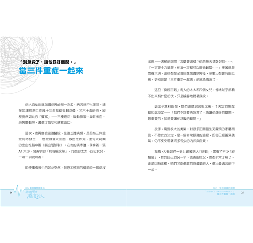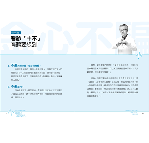 阿金醫師提供給家屬的手寫「病情解說單」就是最好的例證,不僅圖文並茂說明病情,同時傾聽與回應家屬的疑問,如他的名句「不只是要救病人,更要救家屬。」書中,還有阿金醫師貼心提供讀者和醫師互動的指南,包括看診時十件不要做的事,及住院時十四件不要做的事,幽默又實用,敬請翻閱自行服用。