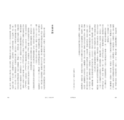 玄奘,俗姓陳(名禕),是洛州緱氏縣人(他的祖先是陳留人)。生於隋仁壽二年(六〇二),他父親是個隱居讀書的人。玄奘是第四個兒子。同二哥長捷都出了家。玄奘出家時年止十三,但這一年有法師講經,他聽一遍看一遍,就都能瞭解。同學請他升座複述,果然抑揚剖暢,盡得師說。由此可見玄奘真是聰明過人。