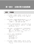 第一部分為主題式實力加強題庫,依題型類別區分為9大主題,針對形音義、成語、修辭、文法、國學常識、閱讀測驗與應用文等常見題型獨立成篇,蒐羅相關題型,供精進學習之用,期盼能在最短的時間內達到最佳的學習效果。