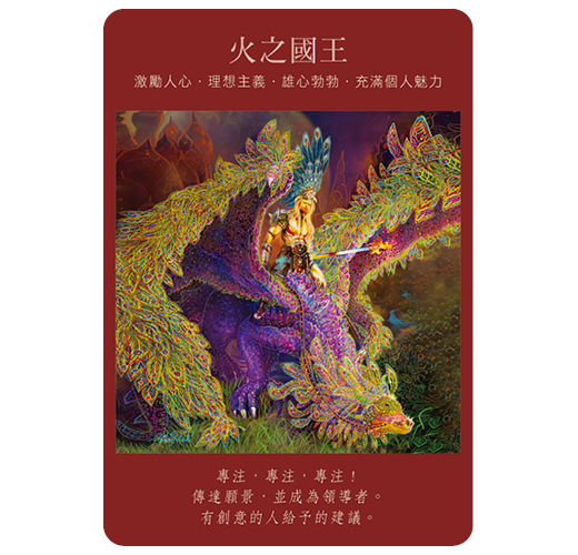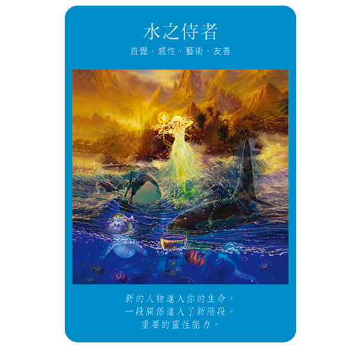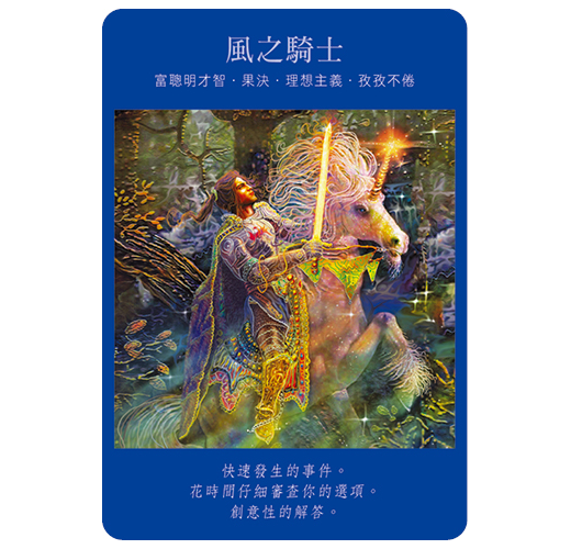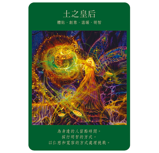 這副牌卡以大天使來代表大阿爾克那的二十二張主牌,在小阿爾克那中則由友善的龍代表火元素;人魚代表水元素;獨角獸代表風元素;精靈則代表土元素。畫風奇幻而纖細,無論是新手或資深玩家,這都是一套能夠點亮你我靈性視野的神奇牌卡。