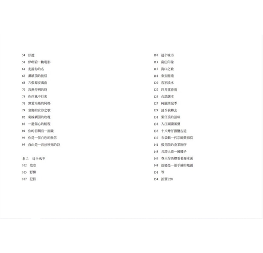 詩集分成「卷一:故事」27首;「卷二:這个城市」21首;「卷三:送行」13首合計61首詩。創作內容涵蓋白色恐怖受難者人物、重大政治事件主題,亦收錄地誌、地景、族群、天災、送別、思念等不同類型台語詩作品。