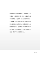 你會發現,在許多的頁面,僅有少許的文字,甚至有的頁面完全沒有文字,但如果你是由前面往後閱讀,你將會被文字引導到一種沒有解釋、沒有意義而單純存在的狀態,這時候,在空白的頁面裡,正好埋藏了強大的空之場域,正好引領你契入這種離於故事的空之場域而引發登出開悟的可能性,這是此引導工具真正的作用。所以,與其說這是一本書,不如將它視為一個引導登出開悟的工具。