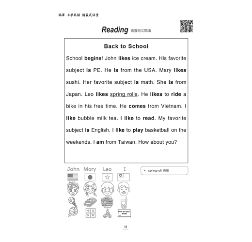 3. 掃碼 QR Code 聽力訓練,使學生在書寫過程中一面聽、一面讀、一面寫,同時加強聽、說、讀的能力。