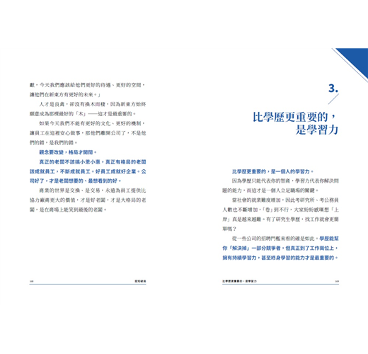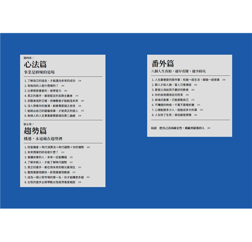 3.作者融合18年企業培訓師和自身成功經驗,以大量實例帶你參透成功企業老闆的思維邏輯、商業形式跟手段,也帶你學會讓人生維持成長曲線的方法。