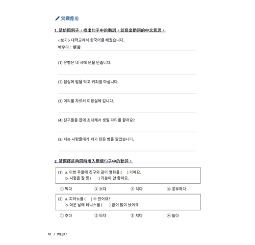 特色二:考試及日常用語只能擇一?實用例句、初級韓檢題目通通有!