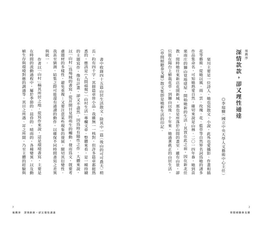 琹川告訴我們,生活中處處是修行,她心境澄明,努力探求更高的境地。這些散文,亦可稱之為「散記」,是極具田園風味的生活紀錄,深刻敘寫山林之眾生相,動植皆文,琹川以其豐富的知識,在生態散文的寫作上,交出一張燦麗成績單;我尤其特喜貫串全書的「親愛的T」,深情款款,卻又理性通達,讀者可能會想探究「T」是誰,我卻視為作者對自身的呼喚。