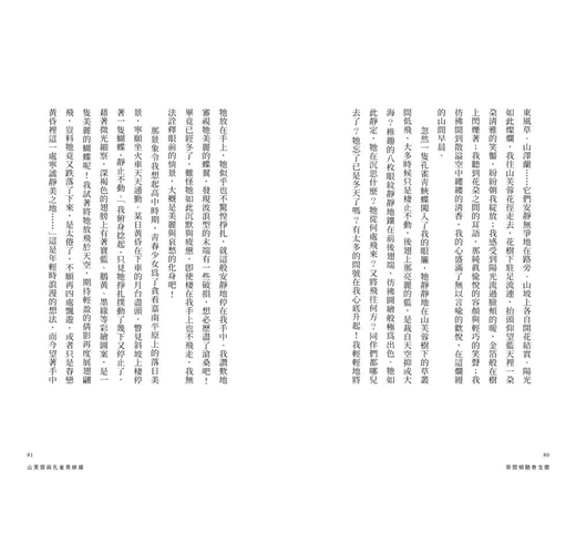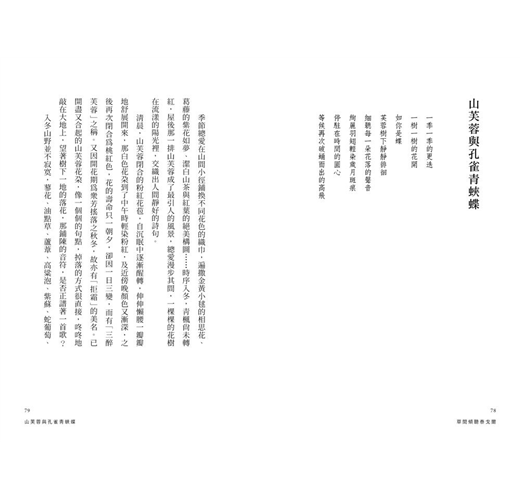 引陶潛、沈復,田園和浮生可喻示琹川生命情調的抉擇。梭羅在季節更替中的簡樸生活,當是琹川之所嚮往,而「散記」,想來更是她之所願。至於泰戈爾「生如夏花之燦麗,死如秋葉之靜美」,從拔草體會「草葉下其實是一個生態豐富的世界」,以喻生命至高的境地,她選擇用這篇名「草間傾聽泰戈爾」來當書名,不難看出她的生活趣味,以及企盼。