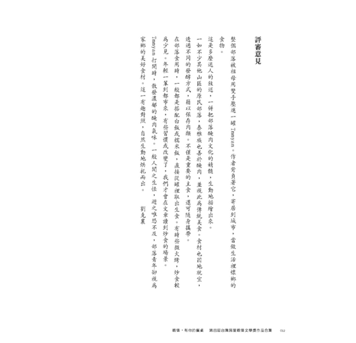 ▍決審評委:方梓、許悔之、廖玉蕙、劉克襄、鍾怡雯