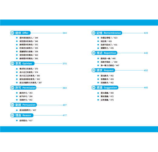 在此要感謝席菈為本書編寫中文引導句。引導句表現了每句話所要表達的基本概念,只要從引導句出發,就能輕易延伸出具體的意思,有助於想法的表達與英會話的學習。這是一本實用的參考書,同時也是一本可提升英會話溝通技巧的學習書,在各位開口說英語,與人交流溝通時,能藉著本書達到讓自己更滿意的表現。