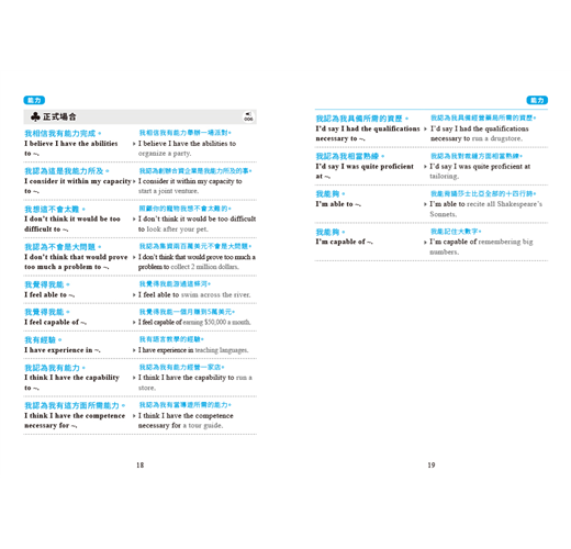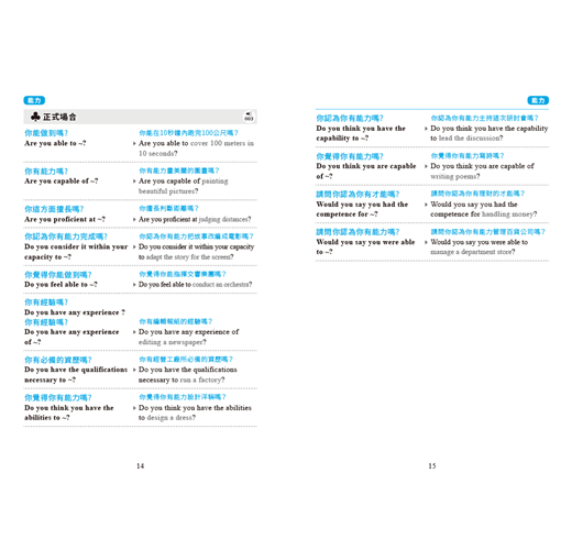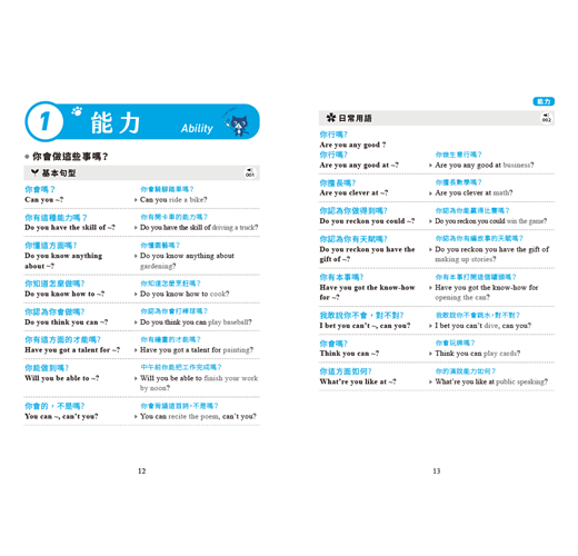 書中會話句根據說話場合分為3種:基本句型、日常用語、正式場合用語。在用英語溝通之際,視場合和對象使用適當的句子,表現得體不失態!