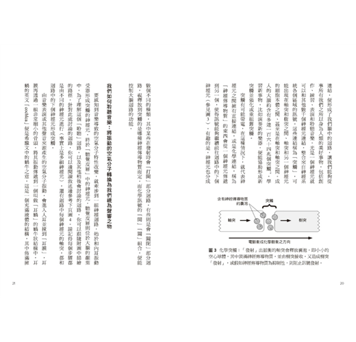 神經科學家及音樂教育家攜手合作,以行為、細胞和神經科學為依據,透過古箏作曲、鋼琴家從讀譜到彈奏出音符的過程、悲傷音樂對心理的影響等例子,說明我們在創作、練習、表演與聆聽音樂時,大腦如何運作、變化與回應,音樂又是如何影響大腦。