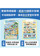 ★孩子最喜歡的車車天地,包含陸、海、空,還有世界各國特殊的車輛,雙面情境式有聲學習掛圖,透過小手按按、自主學習樂趣多,一起來探索多元精彩的交通工具吧!