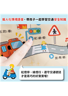 2. 背面上半部以擬人化的交通工具呈現,搭配與場景互動的情境語音,還有生活常見的安全標誌,幫助孩子建立基本的交通安全觀念。