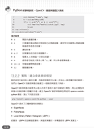 ■全面深入不同領域的應用主題,包括大數據網路爬蟲、資訊圖表繪製、影片下載、PM2.5 空氣監測、公開資料應用、AI客服機器人、圖片批次處理、音樂播放器、臉部偵測與辨識、新聞讀報機等,並納入熱門的「智慧監控系統」,用OpenCV監測影像變化,發現異物進入即用LINE發動警報。結合主流且新穎的應用,立即提升開發力。
