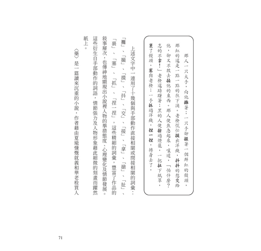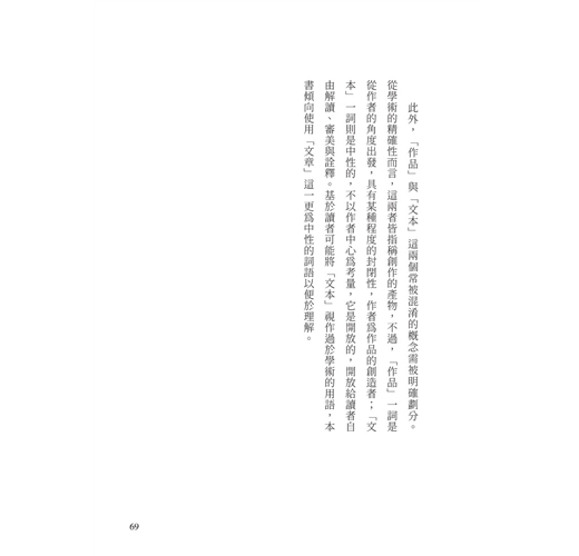 德國學者伊瑟爾曾說:「文本是一個未確定的召喚結構,有意不言明,待讀者來言明。」所謂「召喚結構」有三要素:「空白、空缺、否定」。這些空白、空缺或是否定之處,値得讀者思辨及批判以形成自己的概念。文本閱讀時,字詞表面上可見的「一望即知」(具體),有時是為了上下文脈絡中,許多「一望無知」的「缺口」(抽象)尋覓「出口」的光束而存在的。於是,「空白」不是無,而是「隱白」,是潛藏的內藴,待讀者挖掘,這是華人文化中最擅長的表達方式──「留白」。
