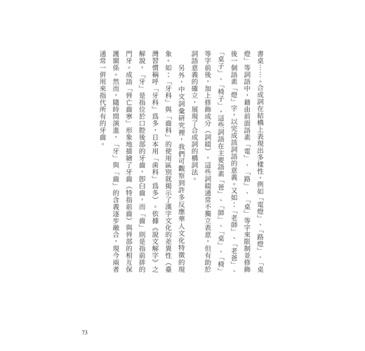 本書中,最特別之處是以英文來作為對比分析,增進讀者對中文寫作的認識。從句子結構及語法來看,西方人表意比較直接,而華人說話前先鋪陳。中文裡習慣將重要的資訊擺在句末,如:「不好意思,因為早上出門比較急,所以就忘了帶要還給你的書,很抱歉!」華人習慣先講前因後果,最後講重點。同樣概念的句子在英文裡會說:「Ah, I forgot to bring your book! I was in such a hurry this morning, I just forgot! Sorry!」英文的表達是直接先說明主要重點,再解釋後續。這樣的差異不盡然是華人文化中重視禮貌所釀成的,許多時候是語法所形成的思維模式。