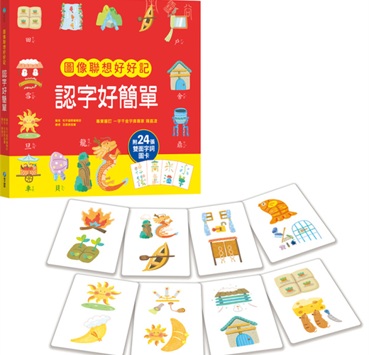 ★附精美雙面彩色圖卡,以書中字形想像圖組成48個詞,藉由遊戲提升學習效果。