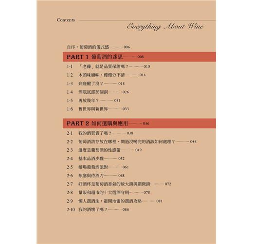 ◆資深葡萄酒講師陳上智,以其20餘年專業經驗,用平易近人的語言,不藏私分享葡萄酒的一切,包含迷思、品種、產地、製程、必備知識,以及如何品飲、選購、存放、運用和餐酒搭配等實用建議。
