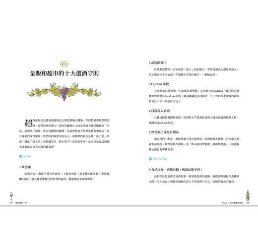 ◆帶領讀者深入了解葡萄酒,並打破迷思,用知識和五感去領略葡萄酒的魅力。