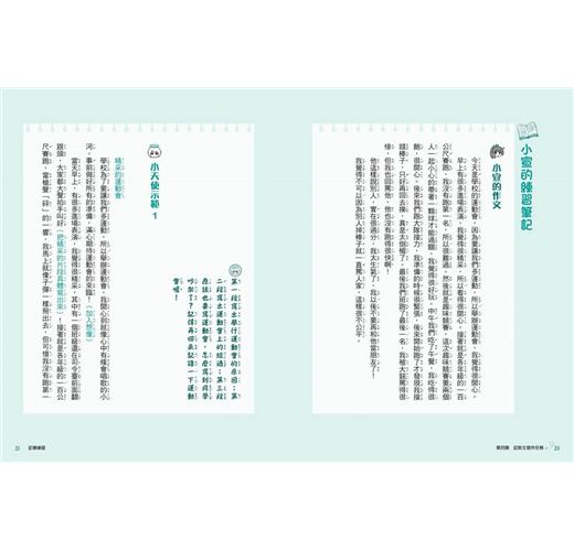因此,本書按照國小寫作教學的課程進度,精心規劃15道初階寫作任務,從基礎的記敘文開始,以趣味的「情境漫畫」,引導孩子進入寫作關卡;接著透過「小宣的練習筆記」,對照一下小宣與小天使的示範,想想看怎麼寫能讓文章更流暢呢?