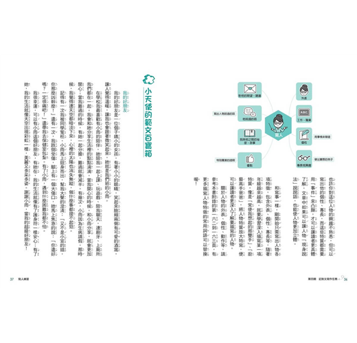 再進入「怡辰老師的寫作祕笈」,運用心智圖梳理思緒與大綱,搭配祕笈說明,快速掌握各任務關卡的寫作要領。最後再閱讀「小天使的範文百寶箱」,幫助自己找到下筆練習時的靈感。也別忘了參考附錄的「常用詞彙庫」,讓自己的文章更添新意。