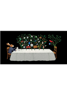 《金繼》這本書從「金繼」這個哲學與美學的概念出發,描繪一隻在兔子與紅鳥正要進行一場宛如《愛麗絲夢遊仙境》的愉快茶會,長長的餐桌上長出掛滿美麗愉悅之日常事物之林。然而紅鳥的色彩褪去,轉為一片慘白,鳥兒轉身飛去。
