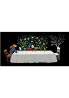 隨著鳥兒的離去,兔子的日常開始失衡、往日的幸福碎了一地。兔子緊抓住一小株綠葉試圖追回鳥兒,牠在草地上奔跑、跌倒,遇見巨大的白馬;牠闖進茂密的帶刺叢林間、划船橫渡潟湖、潛下水底⋯⋯無論進入多麽繽紛的世界,角落總有事物開始轉白,死亡如影隨形⋯⋯最終,含著淚的兔子回到原地。牠握著一只破碎的茶杯,看著眼前景物全非,滿目瘡痍,整個世界都受了傷。牠想了想,決定⋯⋯