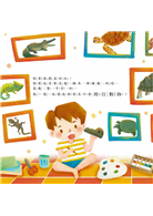 讓孩子假裝是以上爬行/兩棲等13種動物,隨文認識各種爬行/兩棲動物的同時,也可以透過小小的「問答區」,更進一步地了解該動物的特色。