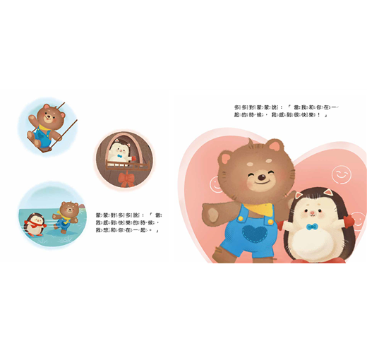 3. 最暖萌的畫風:以孩子最喜歡的小熊和刺蝟作為主角,提高閱讀的吸引力。溫馨的繪圖風格更容易感受到故事的溫暖。