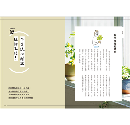 作者先是從心理上解答大家常有的問題,再利用淺顯易懂的圖文帶領我們一步步開始種植。不論是什麼樣的環境與狀況,相信看過本書之後都能有很好的啟發。──這位太太愛植物 Kim