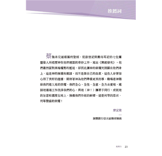 我誠意推薦這一本書,一定能給讀者祝福,經歷恩典滿滿的人生。