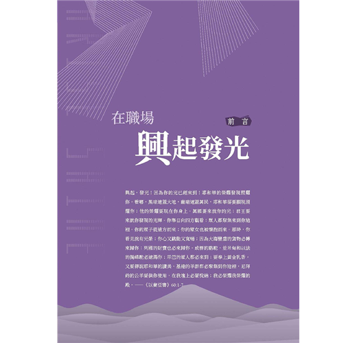 這個與神對話與生命轉化的過程,如同生命的淬煉與脫胎換骨,也是所有職場信徒都會面對的挑戰,更是學習在職場興起發光的必經之路。