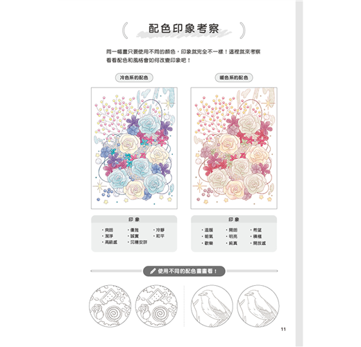 一起來享受著色畫的樂趣,同時學習配色的技巧吧!