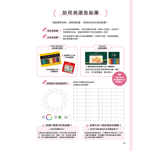 3. 明確列出範本中使用到的色鉛筆顏色,方便作為選色參考。