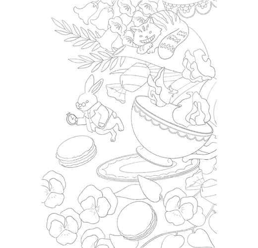 右頁則是相同圖畫的空白線稿,可自由塗上喜歡的顏色。