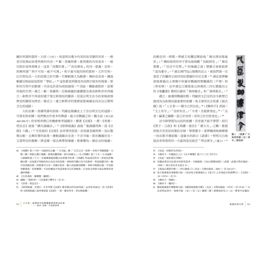 〈從尹灣出土簡牘看漢代的「種樹」與「養老」〉一文則指出秦漢政府如何積極維護一個自古以來鄉里「尚齒」的傳統。〈秦或西漢初和姦案中所見的親屬倫理關係—江陵張家山二四七號墓《奏讞書》簡 180-196 考論〉一文從秦或漢初的一件和姦案辯論案例,指出以秦地風俗為背景的秦律有著和關東六國倫理上的差異,以及這種差異在漢代的意義。以五服制為核心的儒家倫理禮制雖經漢代循吏大力提倡,真正變成國家法律遵循的原則,並在中國社會生根,要等到晉代泰始律出現以後。由於服制成為法律的準則,借法律的力量強制推行,中國社會的儒教化從晉代以後向前大步邁進。