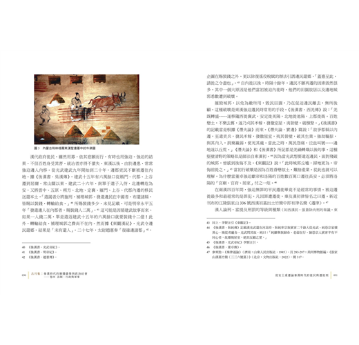 四是注意官僚士人的價值觀。過去有學者指出從戰國以後,封建時代的武士蛻化為文士,漢代儒家興起,變得重文輕武,或者說沒有了「兵的文化」。但我認為封建時代的某些價值觀,如《詩經》裡所說的「允文允武」,並沒有隨郡縣官僚制的建立而煙消雲散。〈允文允武:漢代官吏的一種典型〉一文從兩漢官吏的養成教育、仕宦過程、仕宦中的實際經歷、文官武吏都佩刀帶劍的服飾特色、墓葬畫像和碑志的讚頌、魏晉南北朝士人對當代及漢代的評論,指出秦漢官吏雖分文武,實則分際不嚴。一般官吏習騎射、知兵法,出入文武兩途。兩漢薦書每以「才兼文武」為言,漢末墓葬祠堂畫像充滿狩獵和戰爭圖,墓碑經常以文武雙全表揚死者。這些都反映出封建貴族的基本價值,一直到漢末沒有根本的變化。