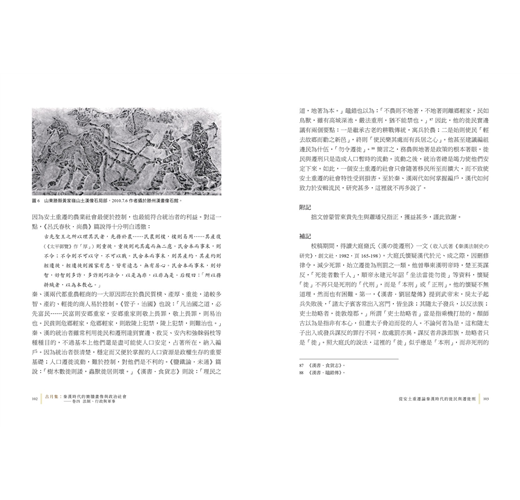 以春秋戰國至秦漢社會最底層的農村聚落來說,在定居式農業、族人聚居、聚葬和職業世代相襲的基本生活形態上都表現出頑強的延續性。聚落內部尊老尚齒的倫理,歷經春秋戰國的鉅變也延續不絕。這是兩千年傳統中國農村一層重要的底色。春秋戰國以來,列國以鄉里什伍之制將鄉野聚落編組起來,加強控制。這並沒有破壞聚落的結構,甚至強化了原有的秩序和權力支配關係。此後,象徵國家徵兵、徵稅和司法的有秩、嗇夫、里正和代表鄉里聚落本身利益的父老,共同成為基層聚落的領袖。這本集子中的〈漢代的父老、僤與聚族里居—「漢侍廷里父老僤買田約束石券」讀記〉、〈漢侍廷里父老僤買田約束石券再議〉、〈從戰國至西漢的族居、族葬、世業論中國古代宗族社會的延續〉和〈從出土資料看秦漢聚落形態和鄉里行政〉四篇都和探討這個主題有關。