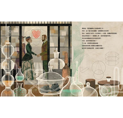插圖中,原子在瑪里的日常、在瑪里的研究、在瑪里的教學,展現出瑪里對原子的投入,也展現了原子的力量!透過閱讀,孩子將看到科學家在生活日常中溫暖的人際情誼、熱情的探究學習!