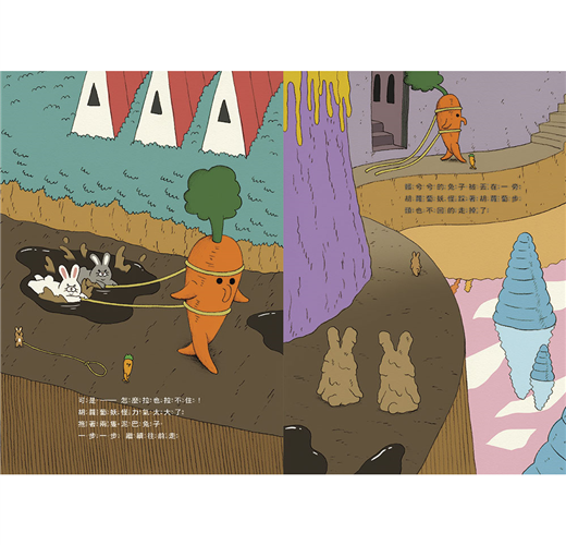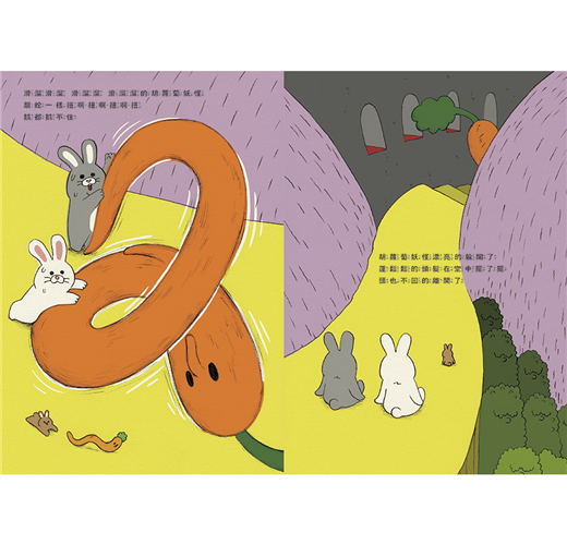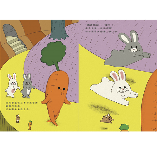 ▶「沒有人能夠阻止胡蘿蔔妖怪前進,兩隻兔子追逐胡蘿蔔妖怪時,那些姿勢真是可愛極了。」