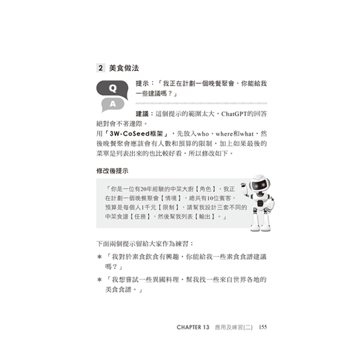 坊間有許多網站和書本收錄了各式提示供查閱和使用。但求人不如求己,有一技在身勝過萬貫家財,學會方法才能熟練使用並持續創新。因此,本書基於提示工程(Prompt Engineering)的技術,深入探討產生高效提示的方法,並分享給大家。