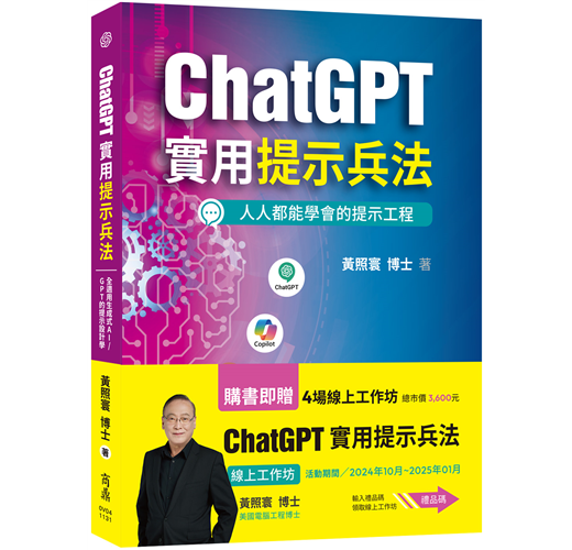 現在購書贈送4堂線上工作坊課程 (總市價3,600元),遠超他人的關鍵,快來成為ChatGPT的高端使用者!
