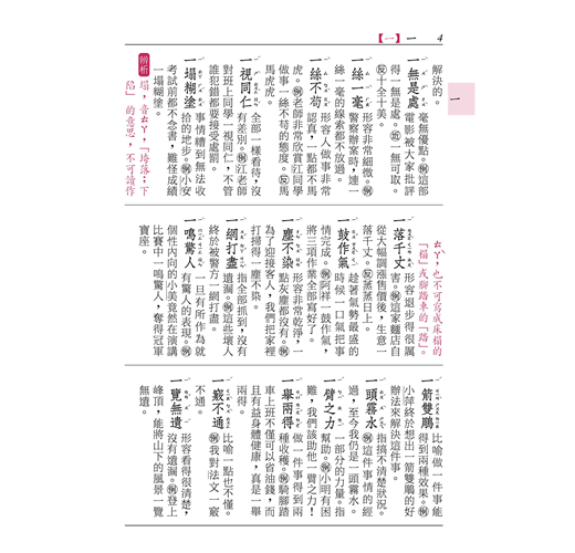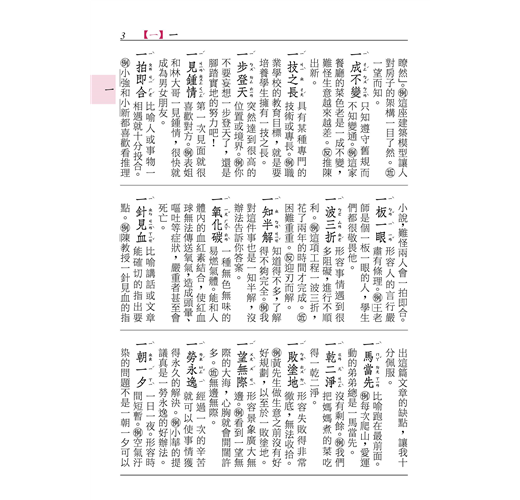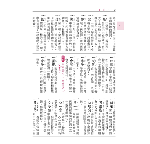 補充例詞例句、近反義詞與衍生詞,並有辨析釐清易混淆字詞、說明詞源,幫助延伸學習,拓展知識應用範圍。