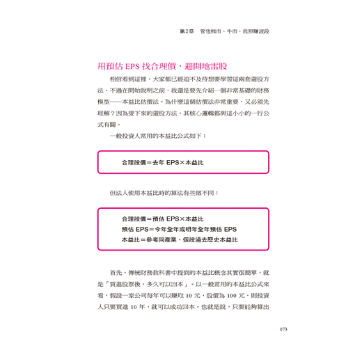 用前面章節的評鑑方法,我們已經可以找出 EPS 有機會大幅成長的個股,但回過頭複習最先提到的法人預估本益比公式:「本益比×預估 EPS=合理股價」,會發現,想要找出超級飆股,只有 EPS 快速提高還不夠,還必須搭配本益比能大幅提升,這就須依賴接下來的「大猩猩選股法」。