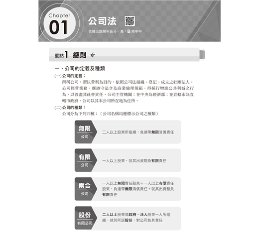從歷屆考題可看出各項重點基本配分上十分平均,但要如何抓到重點?再來,財務分析單元,雖然考題不易出現偏重會計學的計算題,只考觀念題,但要如何建立正確的觀念?本書便是將所有法規、會計及財務分析等所有重要的考試觀念去蕪存菁,幫助你用最快的速度、條理化的記憶模式來掌握分數。除了詳盡的課文內容,編者也特別抓出常考重點,可於考前快速複習時搭配使用。