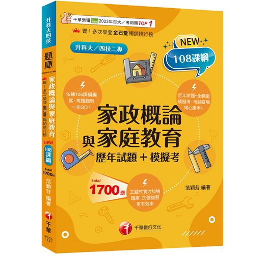 本題庫內容根據民國108年教育部修正發布之技術高中家政群「家政概論與家庭教育」課程綱要編寫而成。統一入學測驗考試專業科目(一)「家政概論、家庭教育」這一科,結合兩科內容、範圍廣大,因此篩選、歸納、整理兩科內容之題目,並撰寫詳細解析而集結成此題庫,讓你能透過大量寫題、解題,在時間有限的情況下系統性的複習該考科。