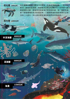 以生動的插畫,搭配妙趣橫生的文字,帶您從海平面往下,認識藻類、海膽、螃蟹以及海獺,了解透光層的生態;再往下就是透過潛水艇可以到達的弱光層,這裡有幾乎是完全透明的章魚;再往下就讓「冰下的海之女神」以及「特里頓」幫我們潛入海洋深處,讓我們一起往下探索神秘的半深海層以及深淵層吧。