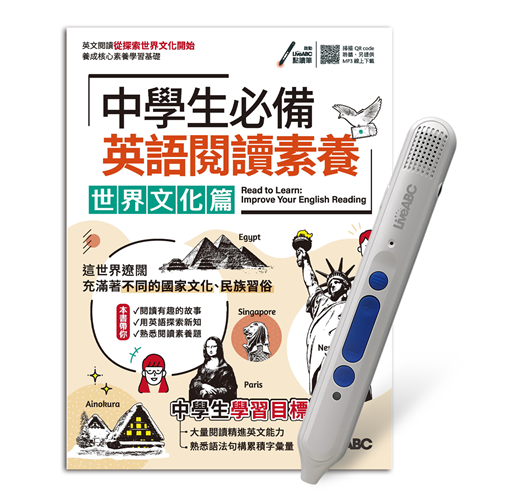 108新課綱著重在培養學生的素養能力,而在國中英語文方面,則強調具備基本世界觀,能以簡易英語介紹國內外主要節慶習俗及風土民情,並加以比較、尊重與接納。另一方面,透過認識不同的文化,藉由訊息的比較,能對國內外文化的異同有初步的了解,進而培養系統性理解與推演的能力。有鑑於此,我們出版《中學生必備 英語閱讀素養 世界文化篇》一書,希望透過廣泛閱讀來幫助讀者累積英文閱讀實力,同時拓展文化視野。