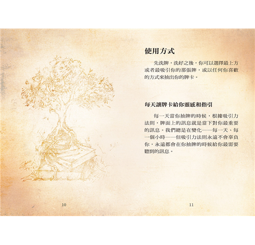 你可以每天抽一張牌,接受當下對你最重要的訊息。你也可以每週或每月進行抽牌,接受牌卡的提點,將這些改變人生的真理應用在生活中,更加完善你的做法。吸引力法則不會辜負你,永遠會在你抽牌時給你最需要聽到的訊息。例如: