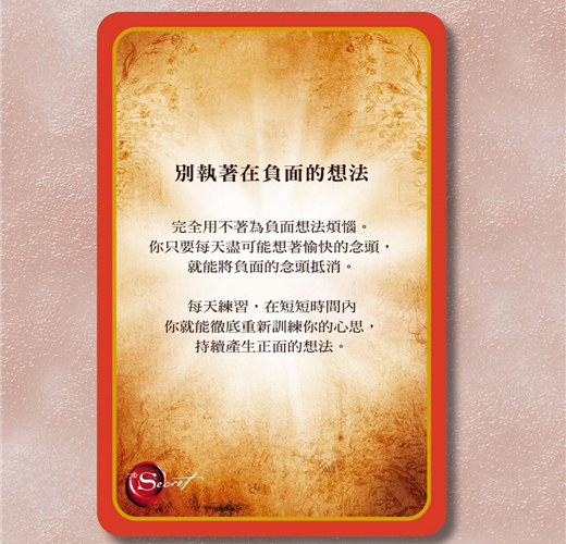 這些牌卡太棒了!不僅品質優良,顏色和質感更是驚艷。打開盒子時我完全沒有想到會這樣。我甚至沒有看過評論,我只知道《祕密》的任何東西都會很棒。這些牌卡是日常生活的絕佳補充!非常適合睡前閱讀,帶著積極的心態入睡,或者在需要保證和正能量的任何時候閱讀!──Tay